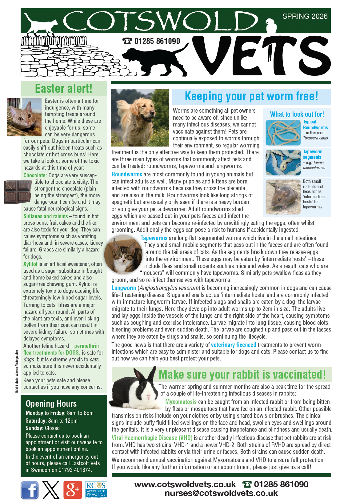 If you have any questions about how we can care for your pet, please don't hesitate to call us on 01285 861090. Thank you!